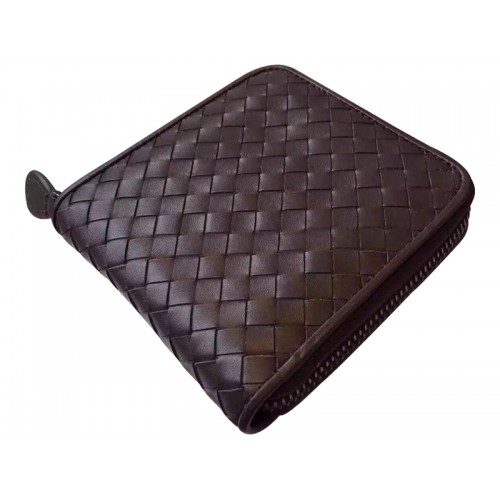 Bottega Veneta Bi-Fold-Geldbörse mit Reißverschluss in Intrecciato-Schokolade