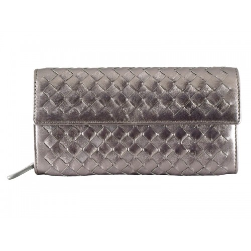 Bottega Veneta Intrecciato Nappa Continental Geldbörse mit Knopf Silbergrau