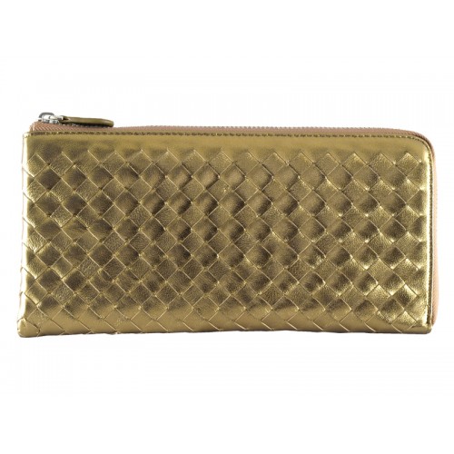 Bottega Veneta Intrecciato Nappaleder-Geldbörse mit umlaufendem Reißverschluss Bronze