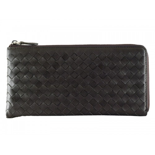 Bottega Veneta Intrecciato Nappaleder-Geldbörse mit umlaufendem Reißverschluss Choco