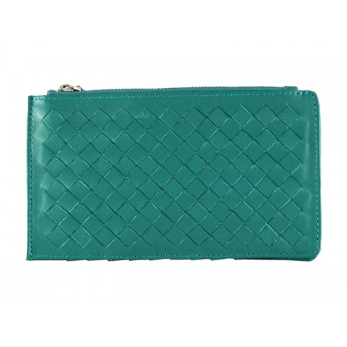 Bottega Veneta Intrecciato Nappaleder-Geldbörse mit Reißverschluss oben Grün