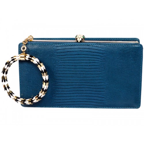 Bvlgari Serpenti gerahmte Pochette in Eidechsenhautblau