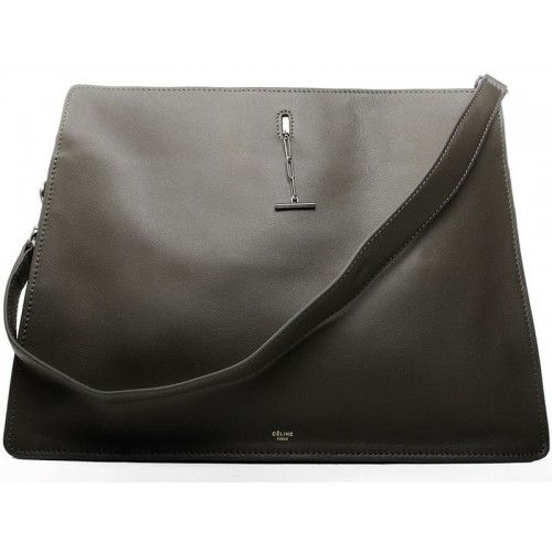 Celine Schultertasche aus Kalbsleder, Dunkelgrün
