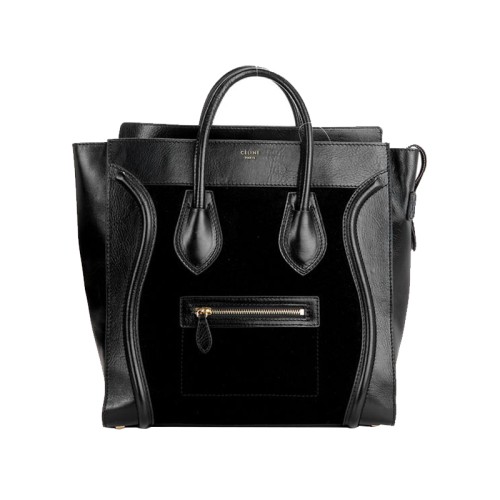 Celine Luggage Medium Tote aus schwarzem Kalbsleder/Wildleder