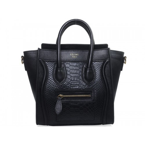 Celine Luggage Mini Tote aus schwarzem Kalbsleder mit schwarzem Schlangenleder