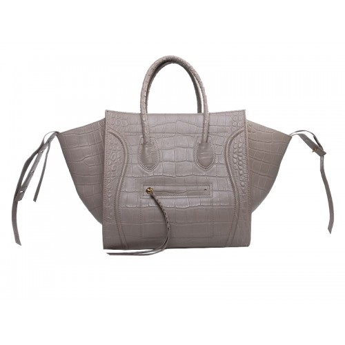 Celine Luggage Phantom Square Tote Bag Croc Light Khaki