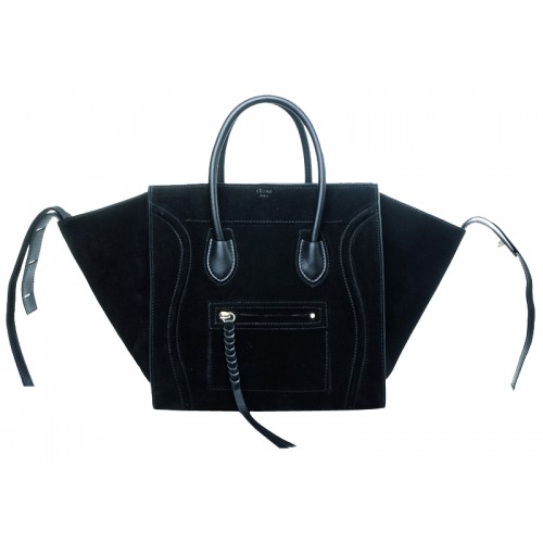 Celine Luggage Phantom Square Tote Bag aus Wildleder, Schwarz