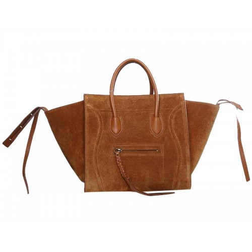 Celine Luggage Phantom Square Tote Bag aus Wildleder, Kamel