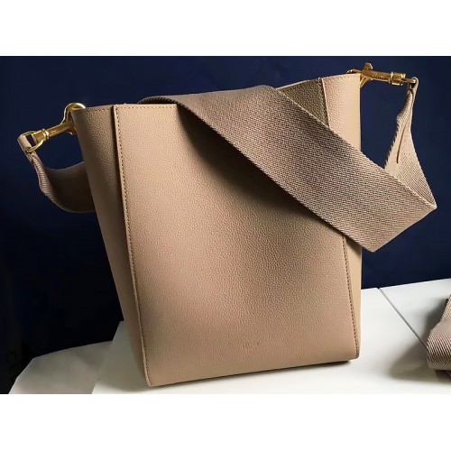 Celine Sangle Kleine Beuteltasche aus weichem, genarbtem Kalbsleder in Beige