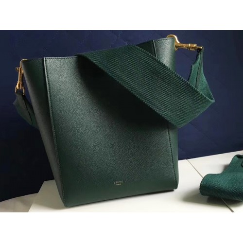 Celine Sangle Kleine Beuteltasche aus weichem, genarbtem Kalbsleder, Grün