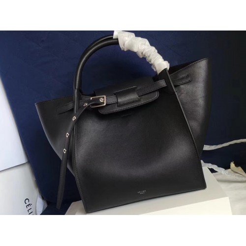 Celine Small Big Bag mit langem Riemen aus geschmeidigem, genarbtem Kalbsleder, Schwarz