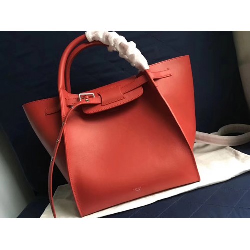 Celine Small Big Bag mit langem Riemen aus geschmeidigem, genarbtem Kalbsleder in Rot