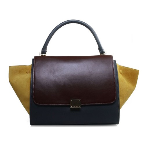 Celine Trapeze Schultertasche, mehrfarbiges Kalbsleder, Weinrot/Grau/Wildledergelb