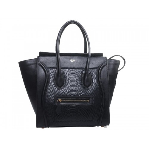 Celine Luggage Medium Tote aus schwarzem Kalbsleder mit schwarzem Schlangenleder