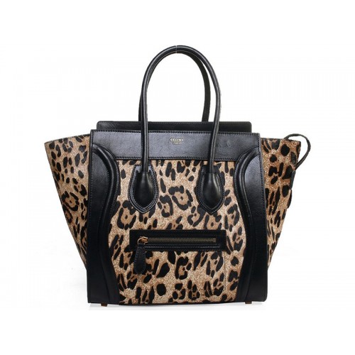 Celine Luggage Medium Tote aus schwarzem Kalbsleder mit Leopardenmuster