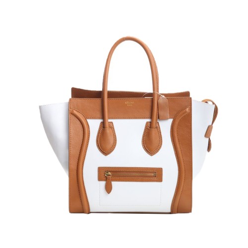Celine Luggage Medium Tote aus Kalbsleder in Camel/Weiß