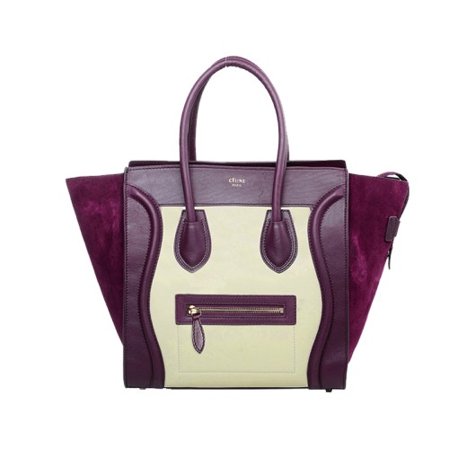 Celine Luggage Medium Tote aus hellbeige/weinrotem Kalbsleder