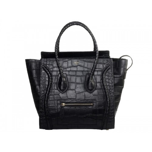 Celine Luggage Medium Tote aus schwarzem Krokodilleder