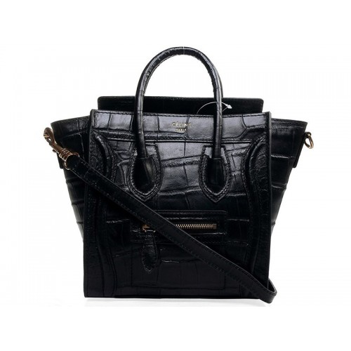 Celine Luggage Mini Tote aus schwarzem Krokodilleder