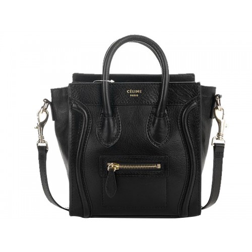 Celine Luggage Mini Tote aus schwarzem Kalbsleder