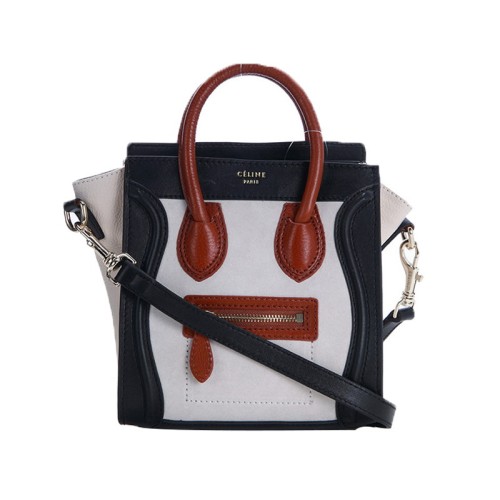 Celine Luggage Mini Tote aus Kalbsleder, Schwarzbraun/Wildledercreme