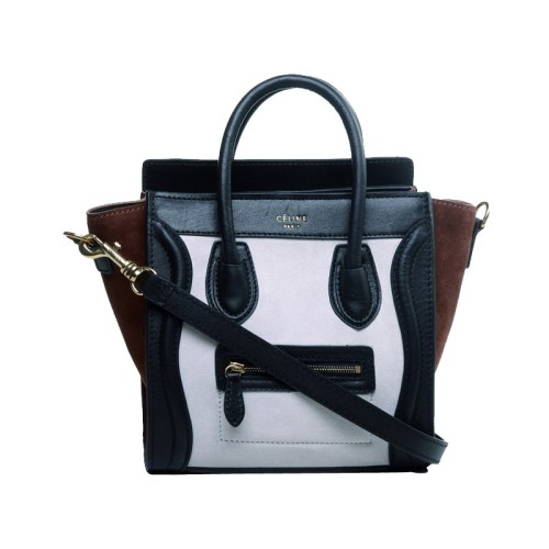 Celine Luggage Mini Tote aus Kalbsleder Schwarz/Wildleder Weiß Braun