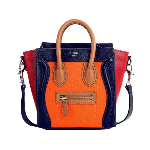 Celine Luggage Mini Tote aus Kalbslederblau/Canvas-Orange