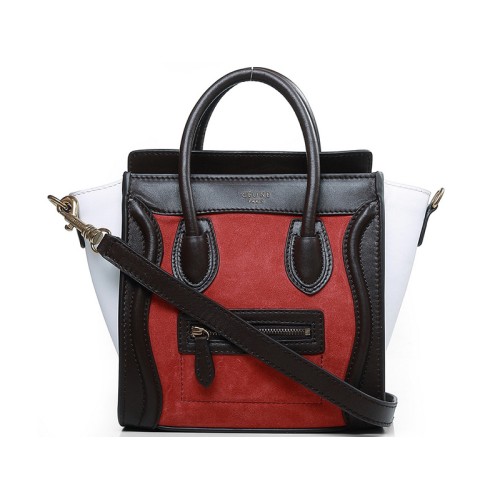 Celine Luggage Mini Tote aus Kalbsleder in Schokobraun/Wildleder-Orange-Rot