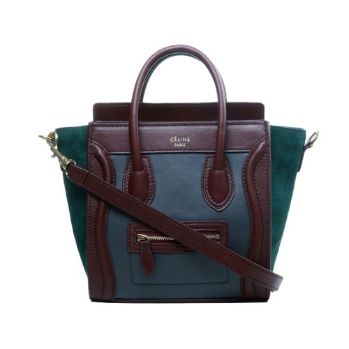 Celine Luggage Mini Tote aus Kalbsleder, Grau/Weinrot