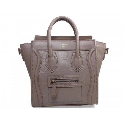 Celine Luggage Mini Tote aus khakifarbenem Kalbsleder mit Krokodilleder