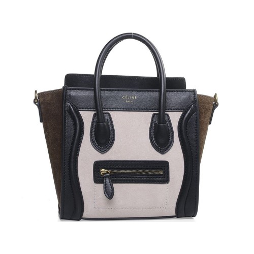 Celine Luggage Mini Tote aus hellbeige/olivgrünem Kalbsleder