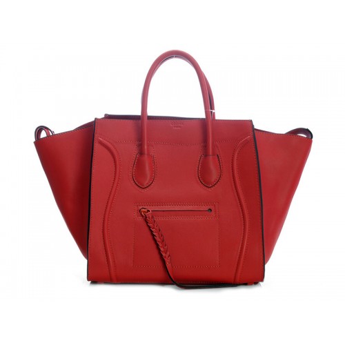 Celine Luggage Phantom Square Tote Bag, Kirschrot mit schwarzem Besatz