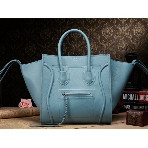 Celine Luggage Phantom Square Tote Bag aus Epsom-Leder, blau