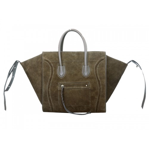Celine Luggage Phantom Square Tote Bag, Wildleder, Olivgrün