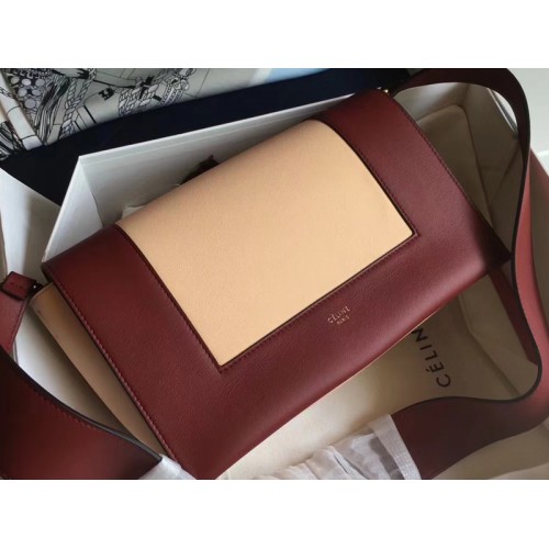Celine Medium Frame Schultertasche aus Kalbsleder in Burgunderrot und Camel
