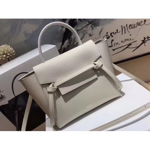 Celine Micro Gürteltasche aus genarbtem Kalbsleder, hellgrau
