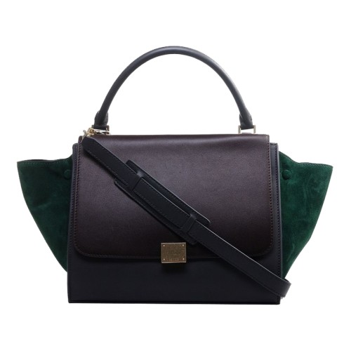 Celine Trapeze Schultertasche Kalbsleder Braun / Wildleder Grün