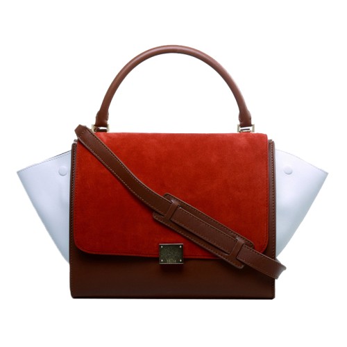 Celine Trapeze Schultertasche, mehrfarbiges Kalbsleder, Rot/Braun/Weiß