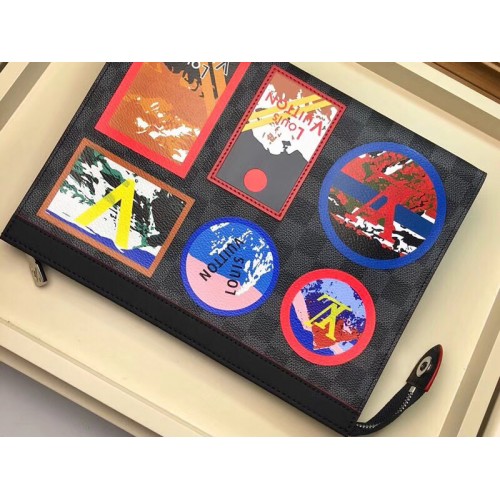 In dieser Saison wird die Pochette-Reise auf Damier Graphite-Leinwand mit ikonischen Patches mit Haussignaturen auf farbenfrohen Bildern der Alpen abgeschlossen. Diese intelligente, strukturierte Tasche ist groß genug für einen Laptop und enthält eine Tasche und Kreditkartenfächer. Es kann in der Hand getragen oder in eine größere Tasche gesteckt werden.