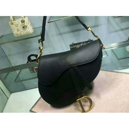 Dior Satteltasche aus Kalbsleder, goldfarbene Beschläge, Schwarz m0446l