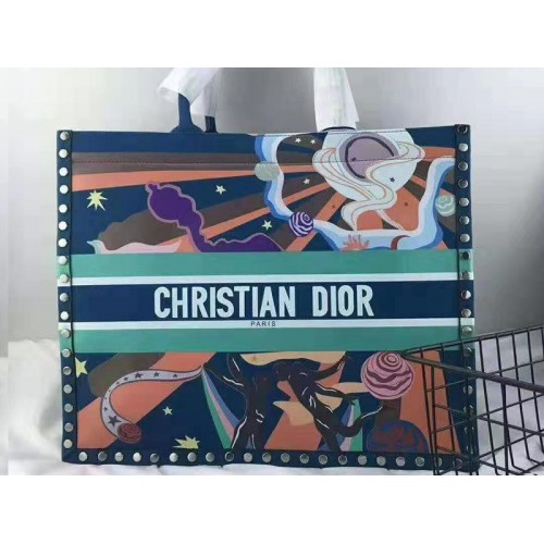Dior Book Tote aus Wildleder, Modell Aladin, mehrfarbig und blau