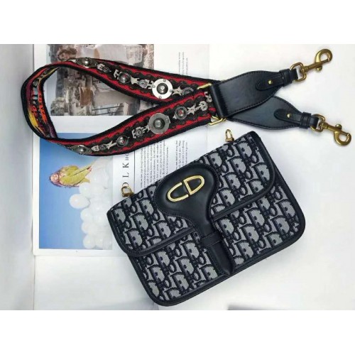 Dioraddict-Tasche aus blauem Dior Oblique Jacquard Canvas, Details aus Kalbsleder.
