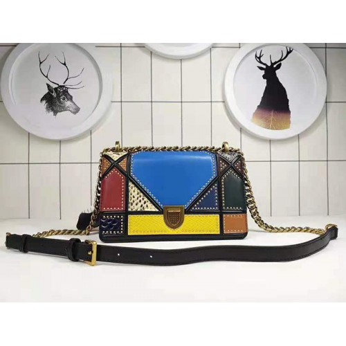 Dior Diorama Kalbsledertasche im Patchwork-Stil, mehrfarbig, blau