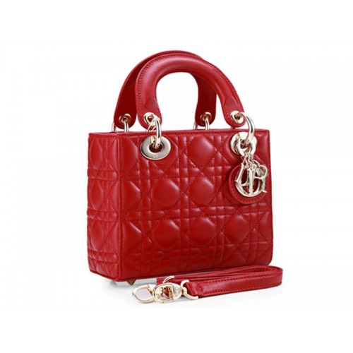 Dior Lady Dior Nano Ledertasche, goldfarbene Beschläge, rot