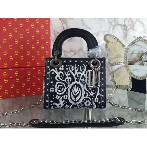 Dior Mini Lady Dior bestickte Tasche Schwarz
