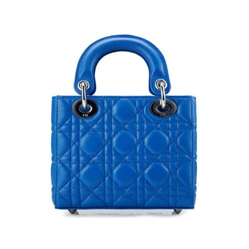 Dior Nano Ledertasche Silberne Hardware Blau
