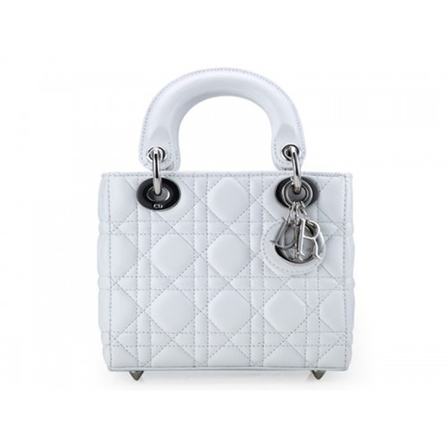 Dior Nano Ledertasche, silberfarbene Beschläge, weiß