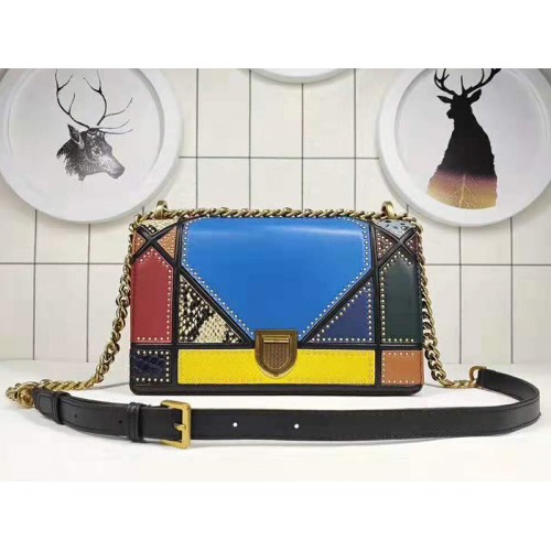 Dior Kleine Diorama Kalbsledertasche in Patchwork-Mehrfarbig Blau
