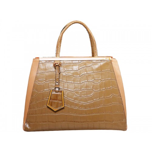 Fendi 2jours Tragetasche aus Kalbsleder, Krokodilmuster, Beige