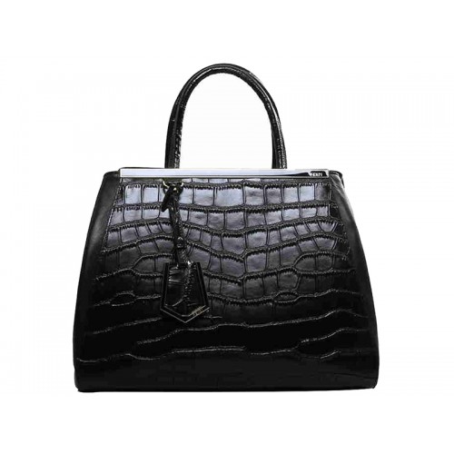 Fendi 2jours Tragetasche aus Kalbsleder, Krokodilmuster, Schwarz